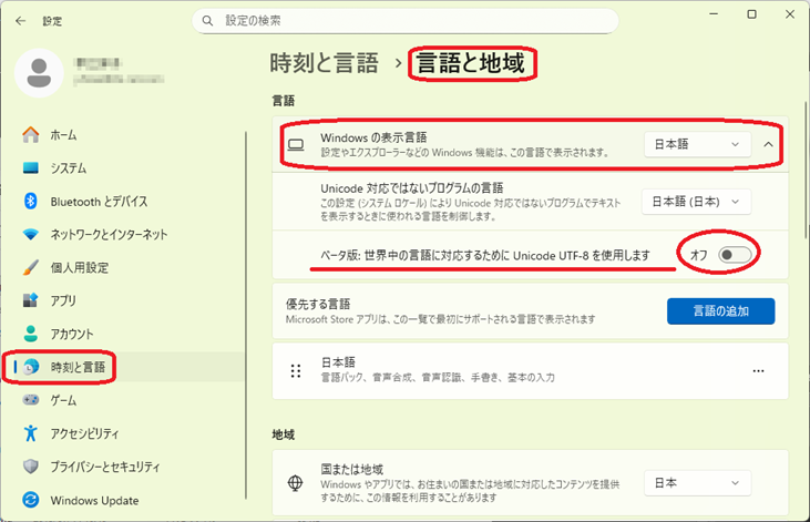 Windowsの言語や日付形式が標準以外のもので設定されていると